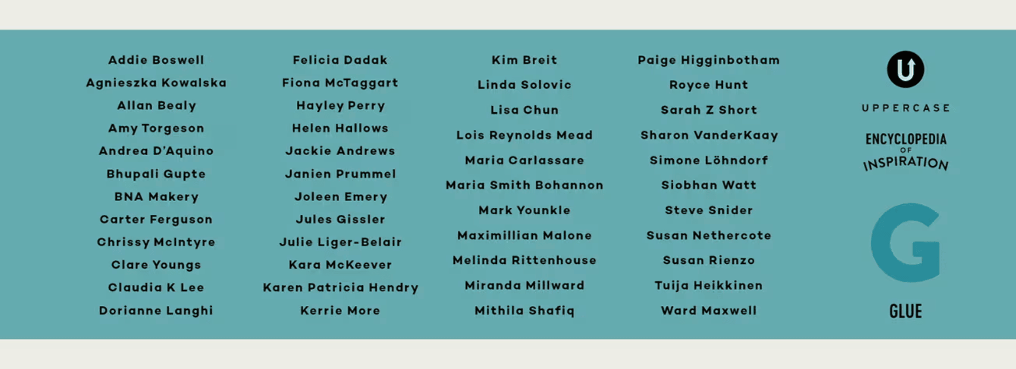 My deep appreciation and gratitude for the 46 artists featured in Volume G: Glue!!! Your artwork is beautiful and insightful and your stories are personal and heartfelt.