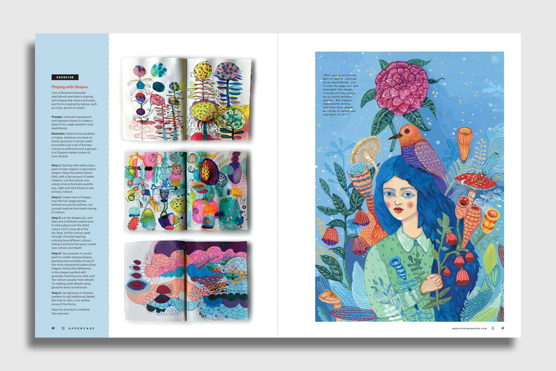 An extensive article by Joy Vanides Deneen: The Artist's Sketchbook: Where Ideas Happen. This spread shows Boriana Kantcheva