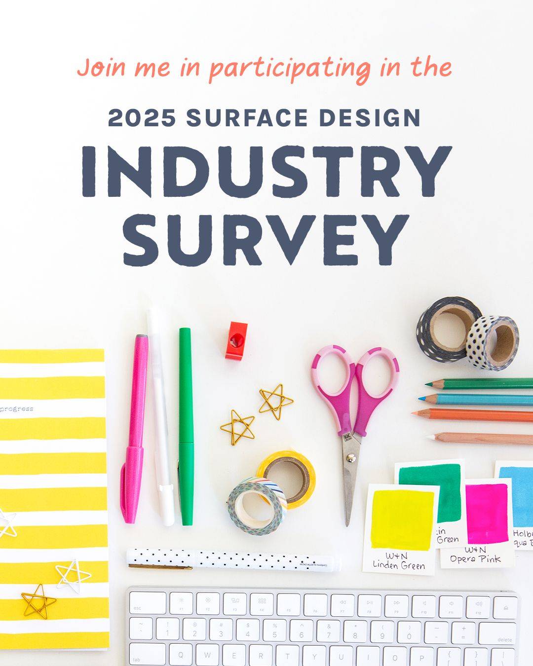 If you’re an artist, surface designer, or someone who’s earned at least $1 directly from your art, you are invited to participate in the 6th annual Surface Design Industry Survey hosted by Shannon McNab. It only takes 10 minutes and is completely anonymous. You can also opt to receive the survey report for free. Open through January 9, 2026.