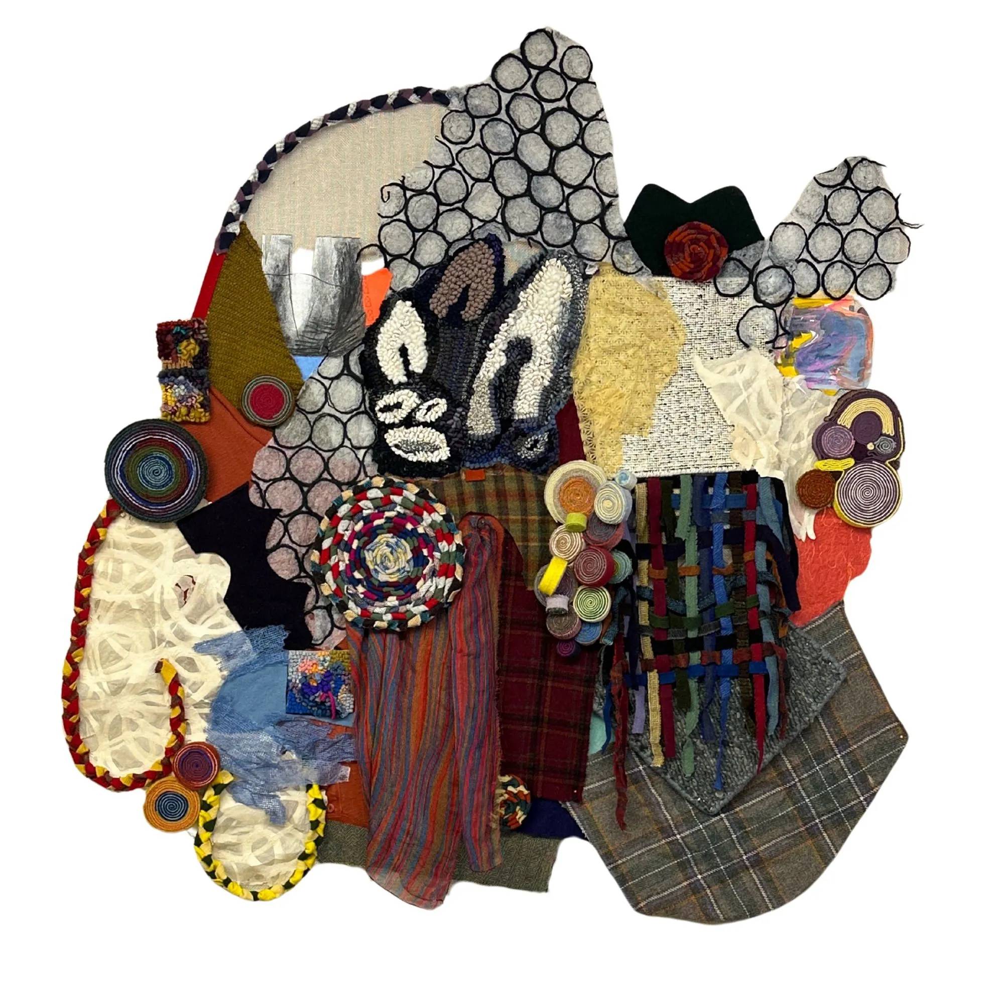 I am the owner of a small rug hooking business in Warren, Rhode Island, called Loop by Loop Studio. My portfolio work has recently been focused on large wall textiles made from recycled garments, paintings, wool bits and bobs that surround me in my workspace. It began when I started using my discarded hooked rug pieces as parts in paintings on canvas, and quickly evolved into free-form, draped, sculptural wall pieces. I often collect discarded garments and papers to use in craft projects, so those types of materials have also found a home in these pieces. Instagram / Website