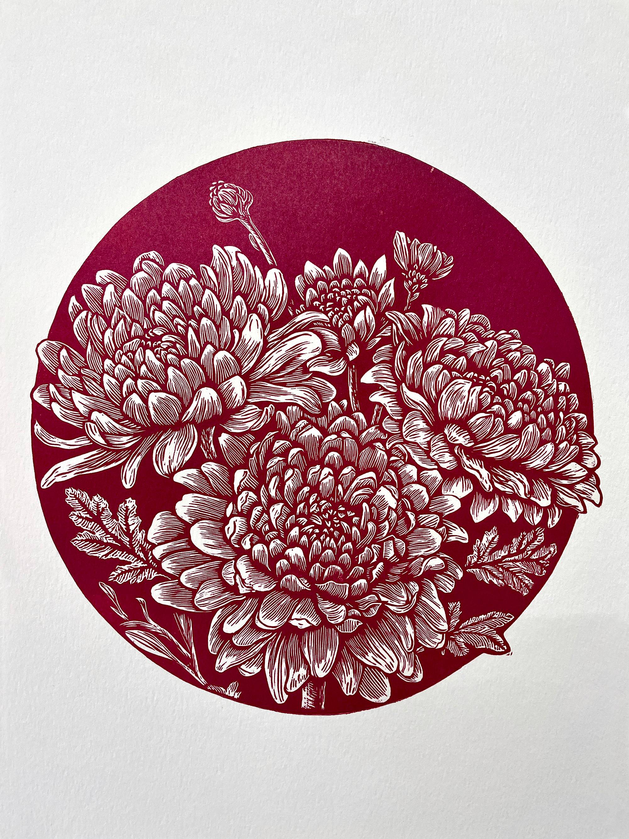 Inspired by the memory of seeing a cartload of chrysanthemums in the city when I was a child, I selected some traditional flowers that I like to create this retro floral series in crayon colours. Besides, my birthday also coincides with the blooming time of chrysanthemums! Instagram / Website