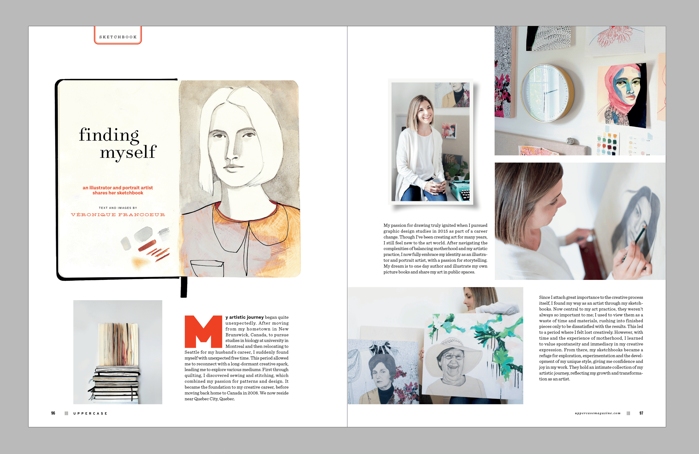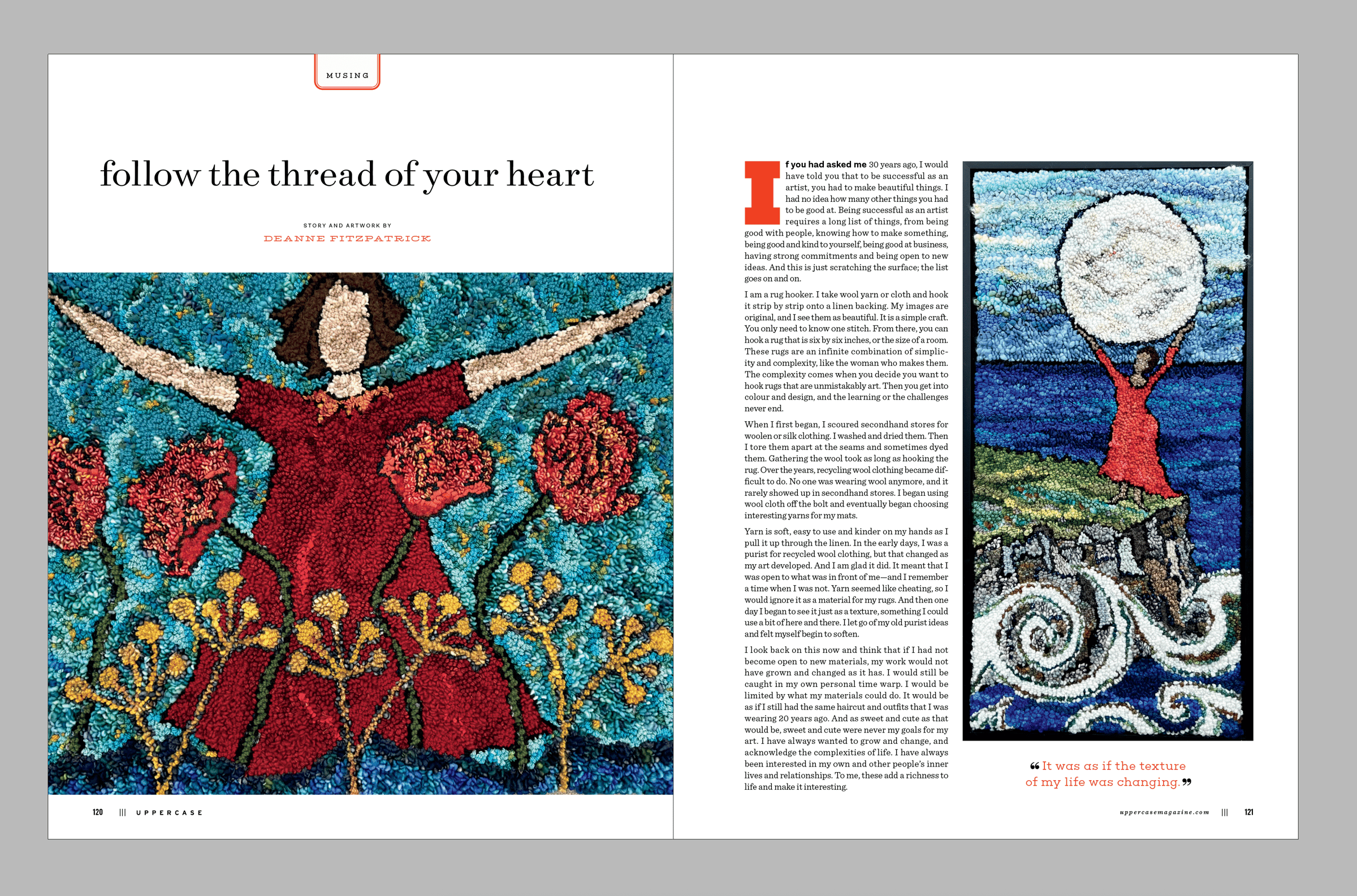 Okay, with the logistics out of the way, let me show you WHY you'll want to subscribe! Here's a sampling of spreads from the next issue. The two main themes are "the creative self" and how we nurture our creativity, and "texture" created, found and metaphorical. I'm really pleased with how this issue has come together; I think you will find it inspiring and uplifting.