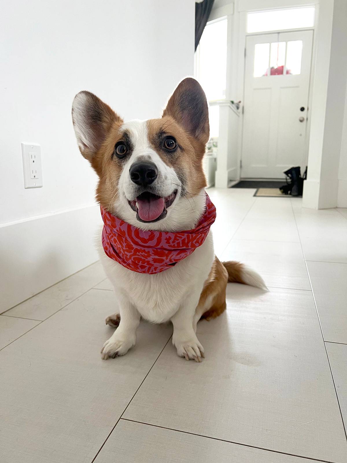 Finley and I started a list about our corgi, Rupert. The little fella is often afraid of things. Like wearing a scarf for the first time: