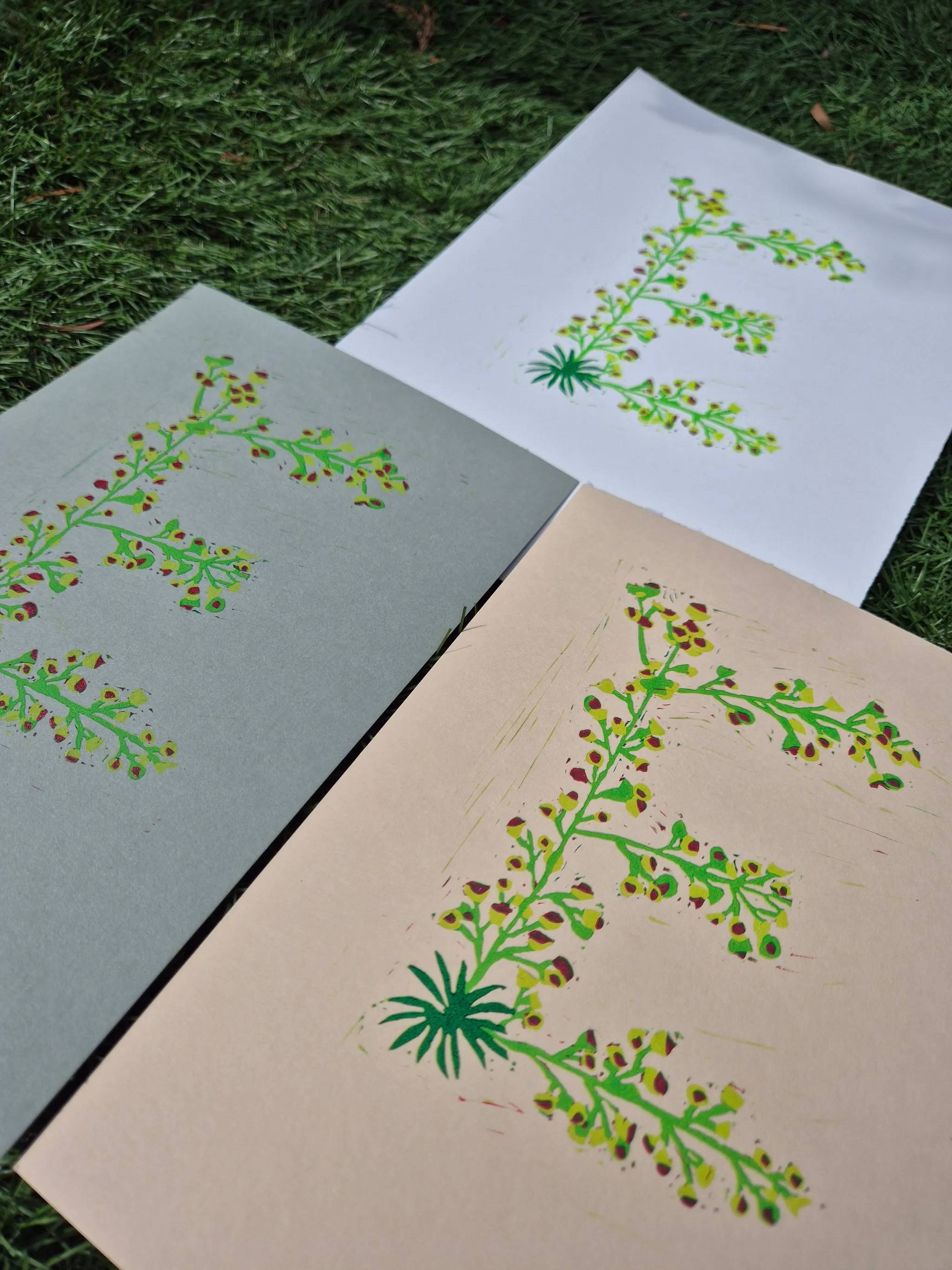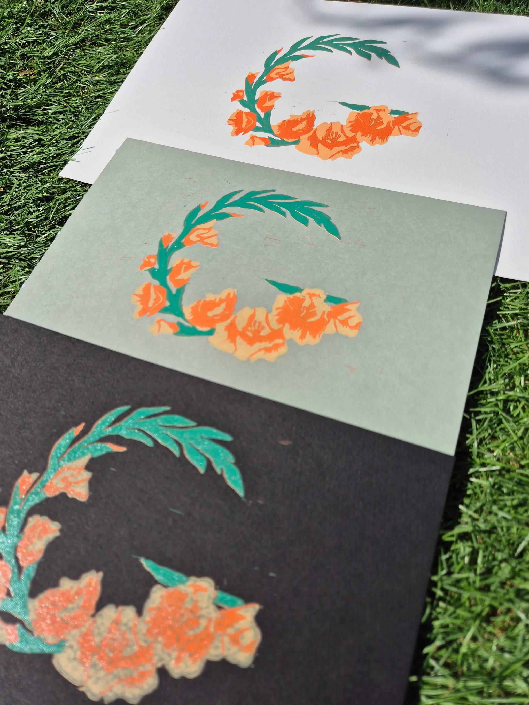 Hi, I'm Ellie, an illustrator who loves nature and its beauty. I am sharing the project I have set for myself—designing the alphabet entirely out of lino-printed flowers. This project originated from a doodle in my sketchbook, an idea that came to mind after my dad bought me a Bleeding Heart bush, and I tried reduction lino printing for the first time. The result was significantly better than I had expected for my first time using this technique (I had previously only done single-colour prints), so I decided to sketch more ideas and attempt to complete the entire alphabet. I am currently sharing my progress on my Instagram page and stories, showing the different layers as I print them and the finished outcomes. I am also considering turning them into stickers and possibly custom name prints. Instagram / Website