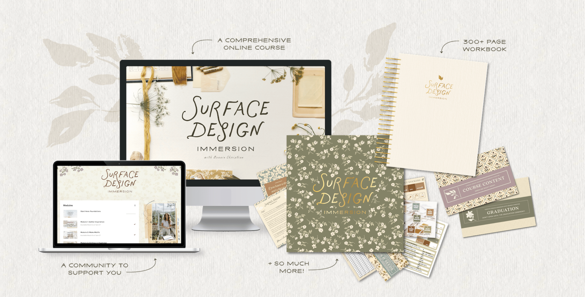 Surface Design Immersion is aptly named—it truly is an immersive experience, from the physical workbook to the beautifully presented lessons.